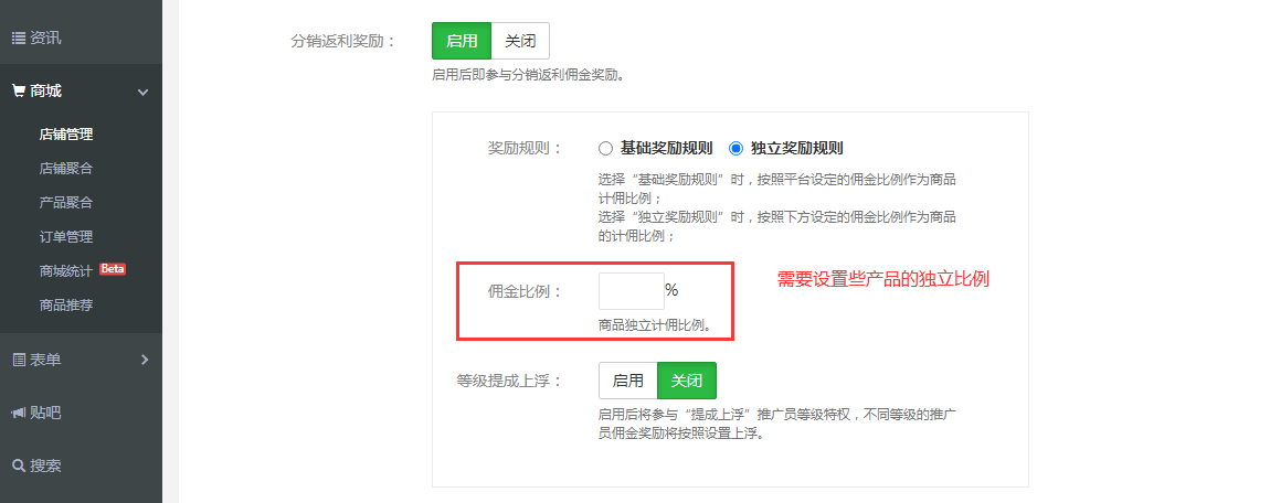 2.1進入店鋪設置商品傭金獎勵
