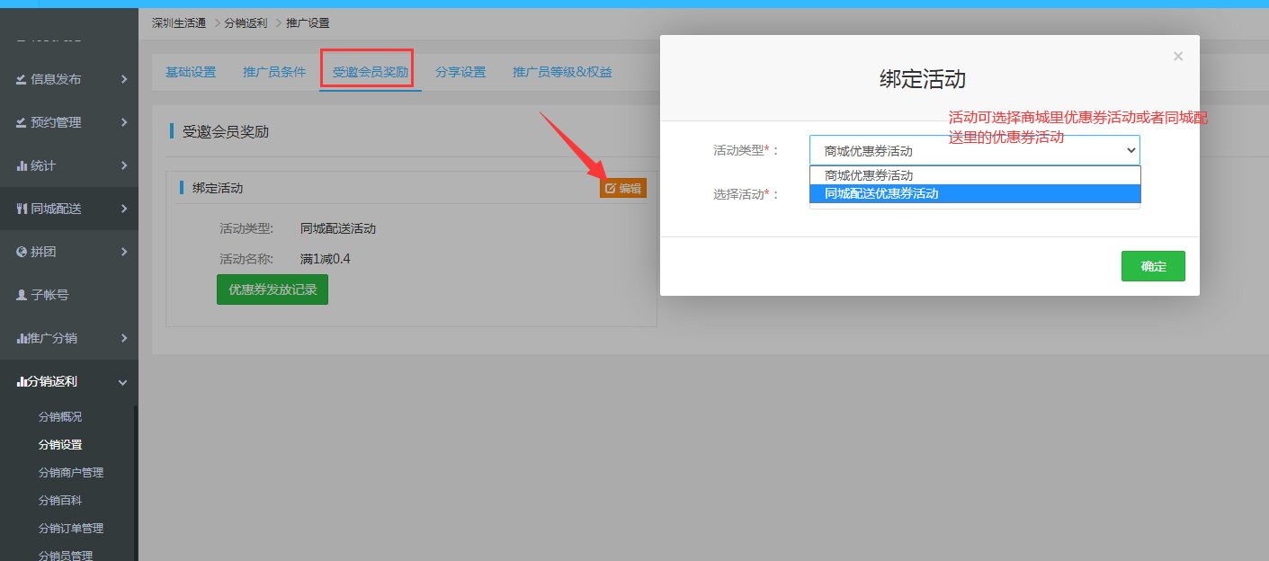 4)受邀會員獎勵:推廣員邀請下線,注冊下線所領取的優(yōu)惠券活動。