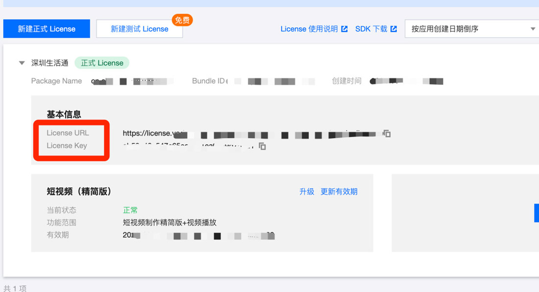 一、創(chuàng)建SDK License:(如果不需要支持短視頻直接從第三大項開始看)
