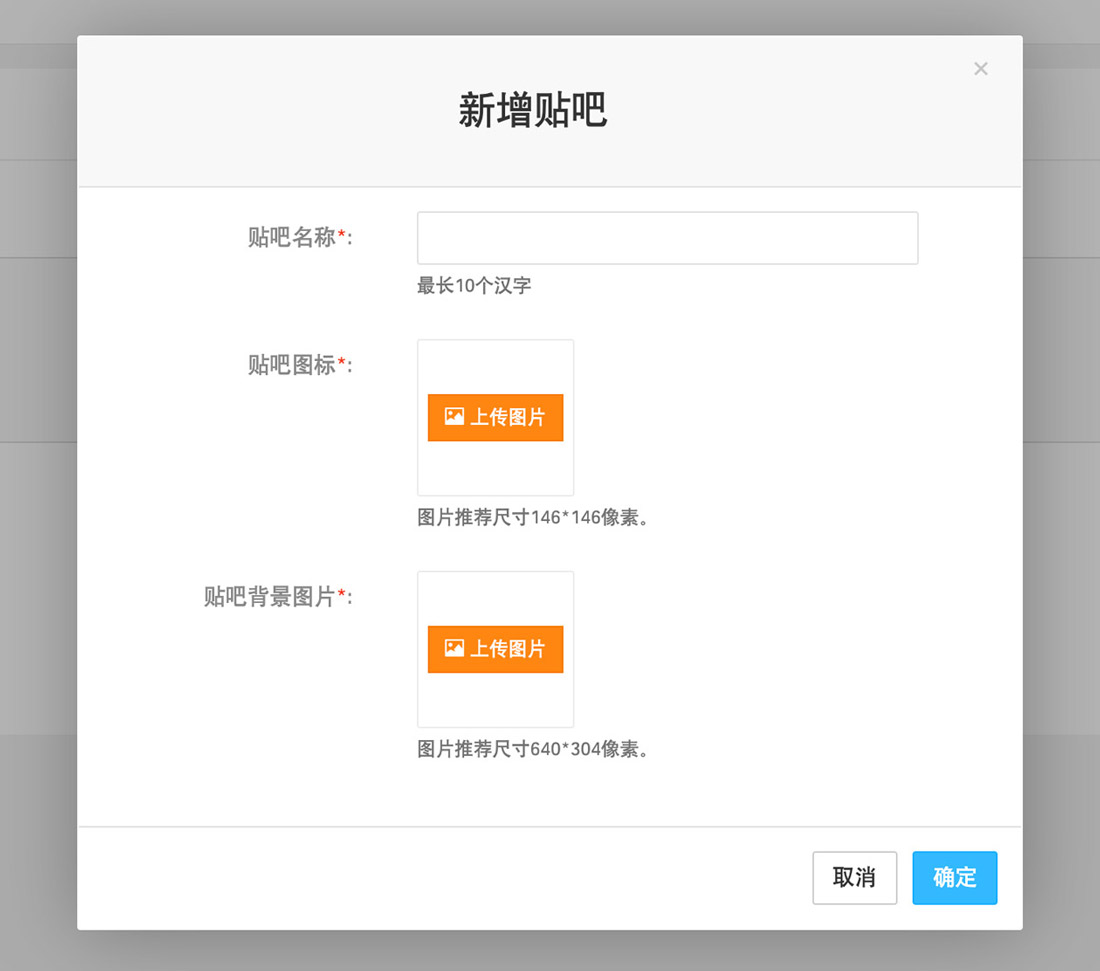 1. 運營管理平臺“貼吧”——“新建貼吧”,按照要求填寫內(nèi)容并且點擊確定即可。