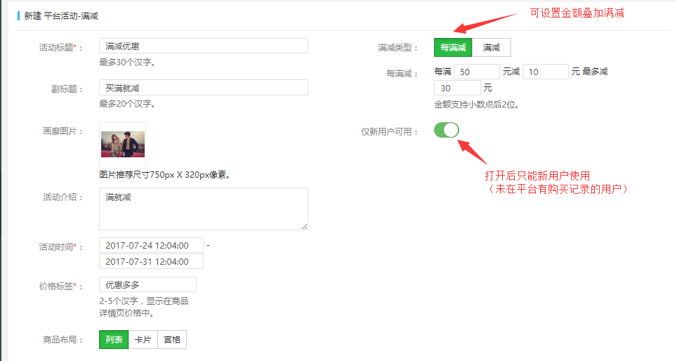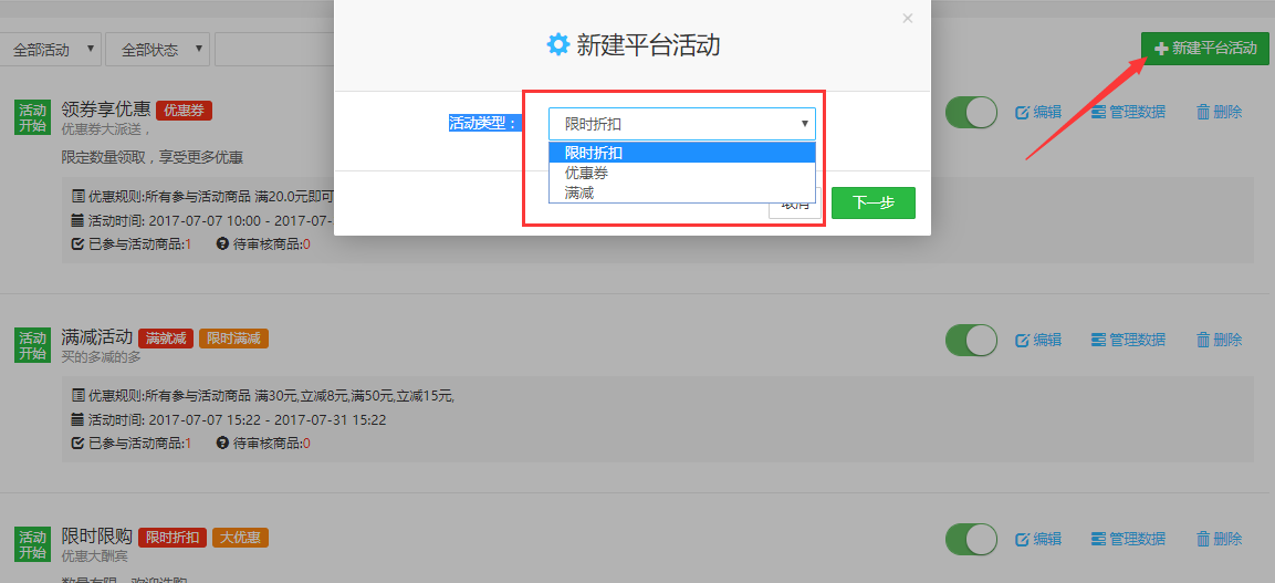為了更好的優化商城盈利模式,促進商家產品的銷售,應用公園3.0活動營銷系統-平臺活動正式上線。限時折扣,優惠券,滿減等促銷功能一應俱全,條件設置靈活、簡單易用;