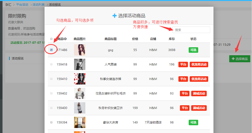 f.支持自營店鋪及第三方入駐店鋪報名參加該活動